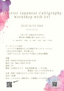 Ever wanted to try creating beautiful calligraphy like Eri’s? This is your chance to learn from her in a relaxed, friendly setting.